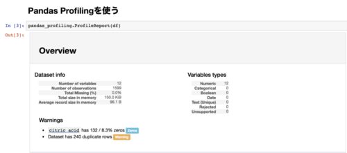 こんにちは。最近Kaggleとかやっていて、EDAやるのめんどくさいとか思ったりしちゃったりした時に、ざくっと簡単に分析することができないかなぁと思って調べていたら「Pandas-Profiling」というものがあったので、実際に使ってみました。 本家のサイトなど …
